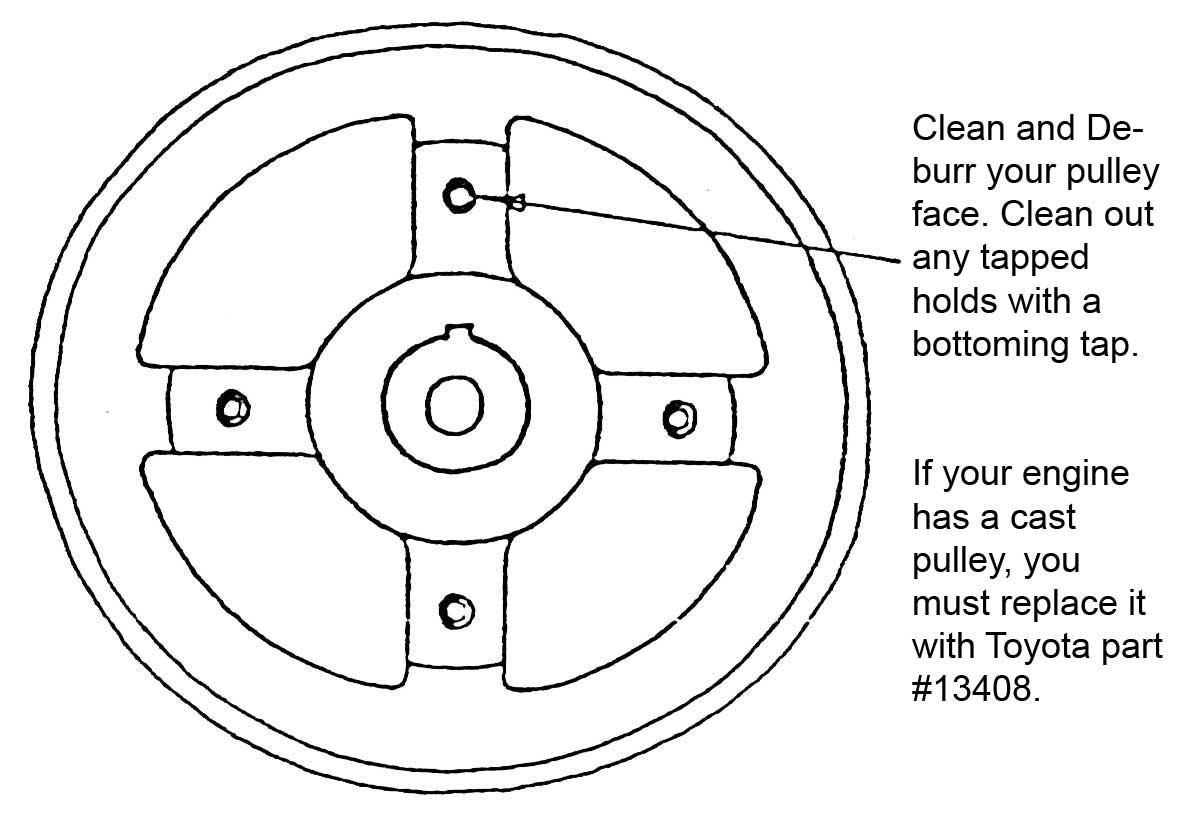 1. Clean the face of the crankshaft drive pulley of all grease and foreign matter. Make sure the four threaded holes are clean,