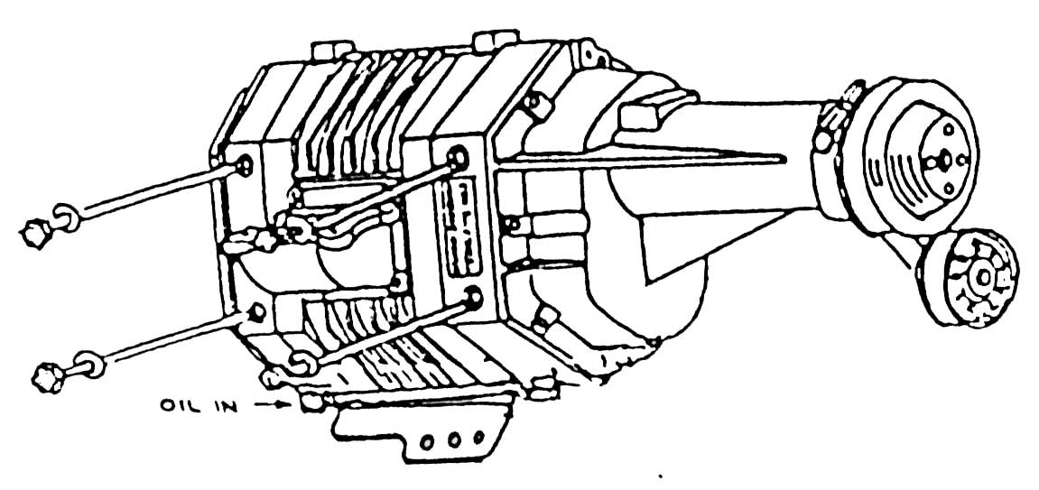 18. Install the 1/2" oil return hose between the oil pan bung fitting and the blower oil return "T". Clamp securely using the clamps provided.