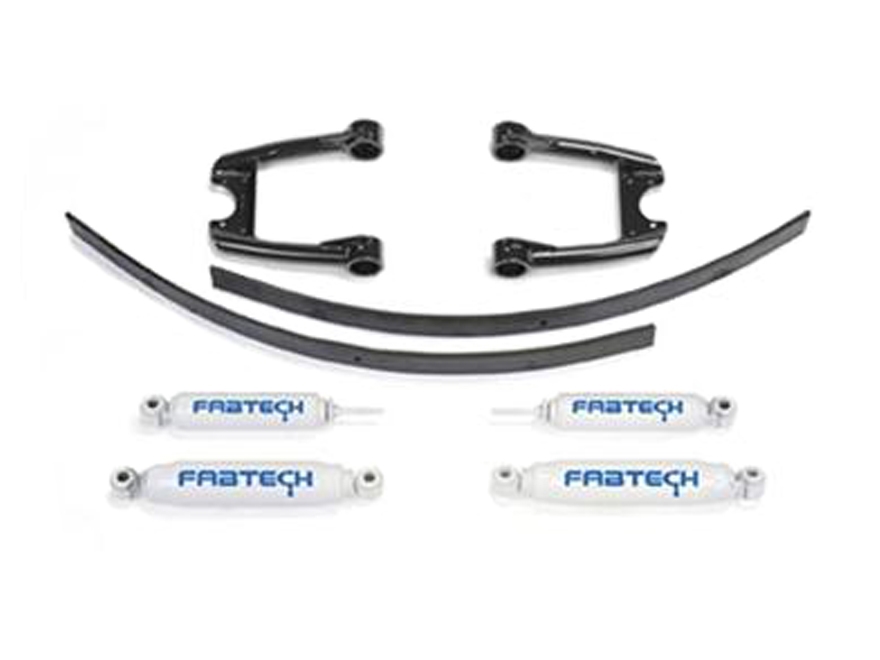 This 3.5″ Performance System for the Toyota pickup utilizes Fabtech heavy-duty upper control arms to achieve front lift and add-a-leafs bring up the rear. Finishing off the suspension kit is front and rear, twin tube, performance shocks.
