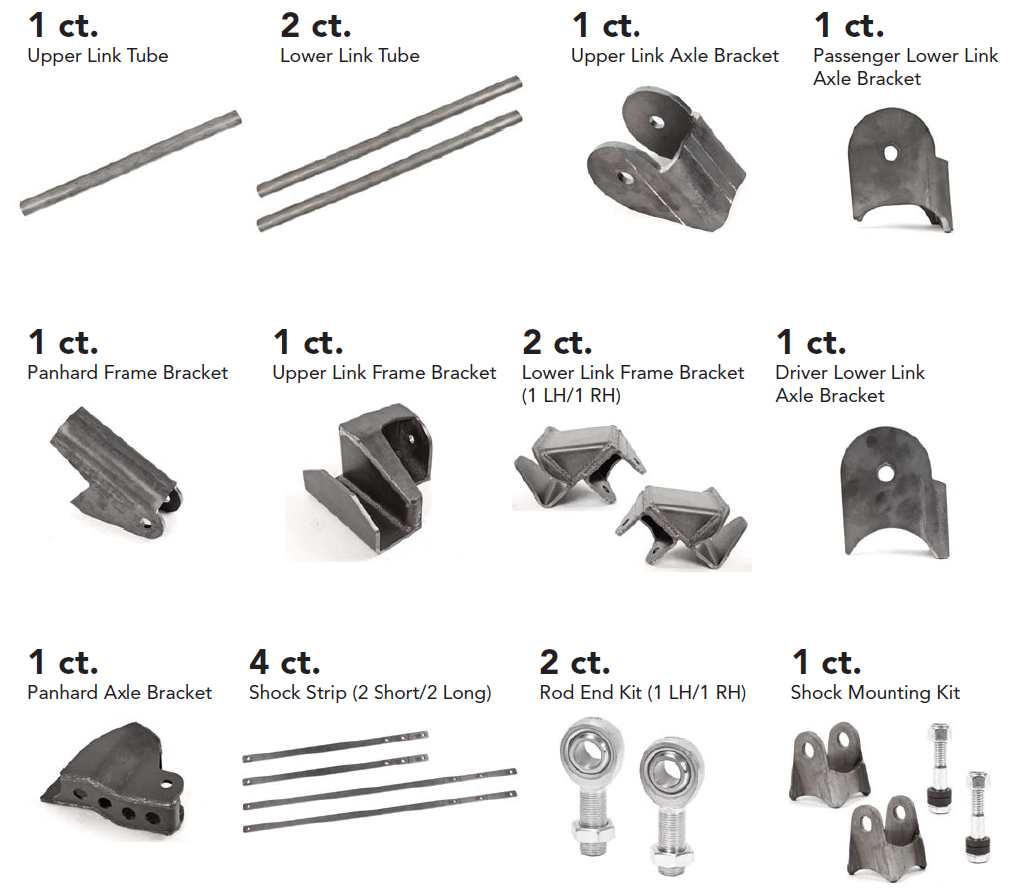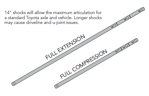 This kit has been extensively tested and has been in service for months on multiple trucks and has proven itself to be another superior Trail-Gear suspension product. Kit includes everything you need except your choice and size of shocks and upper shock mounts. Upper shock mounting location varies from vehicle to vehicle.