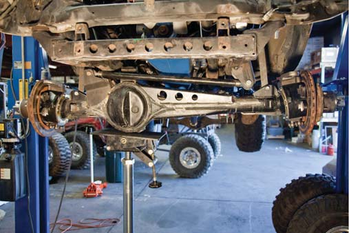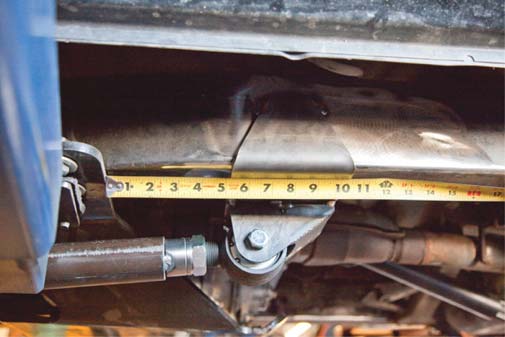 12. Check the placement of the axle in the vehicle using the marks made on the frame in step 2. Axle is shown moved 3" forward of original location. Measure from frame to knuckle ball on each side to ensure that the axle is centered side to side.