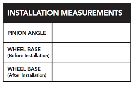 axle pinion angle. Record the data in the table on the last page of these instructions.