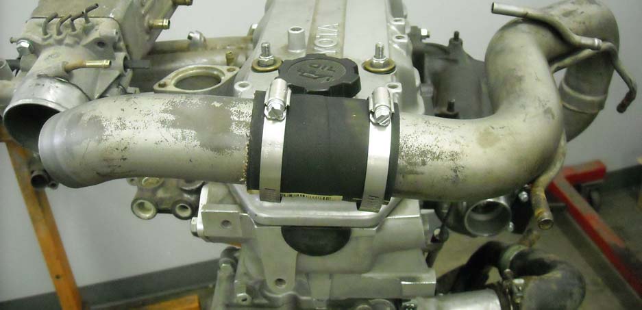 22. Cut coolant hoses to predetermined length and install on turbo (tighten clamps now for easier access).