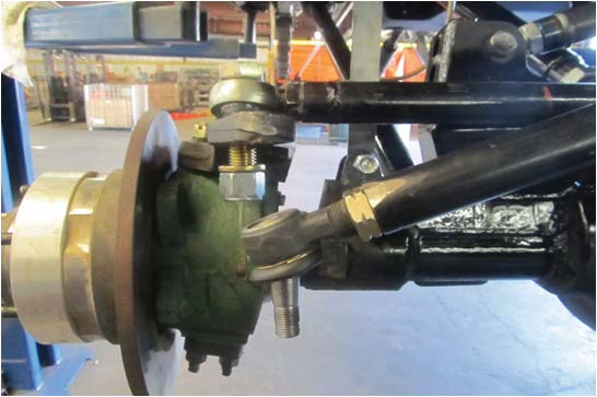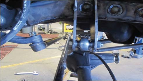 9. Place the vehicle at ride height. This will be critical if you are matching a leaf spring ride height in the rear. Place the axle in the desired position (forward/aft), and center it under the truck. Measure the length needed for the lower links(should be the same). Cut the tubing and tack the bungs into place. Install the joints and bolt the links into place. Ensure the tie rod and drag link are parallel.