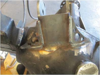 11. With the axle completely located, Install the axle side panhard bracket. If you are using Rock Assault housing , place the bracket in top of the old spring perch and tack in place. With the tie rod in place , turn the steering lock to lock to ensure the tie rod does not contact the panhard bracket.