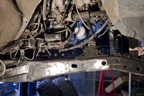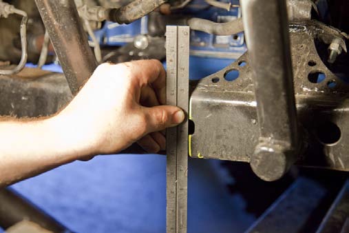 2. Mark the center-line of the front axle on each side of the frame. These marks will provide a reference when all brackets are cut off.