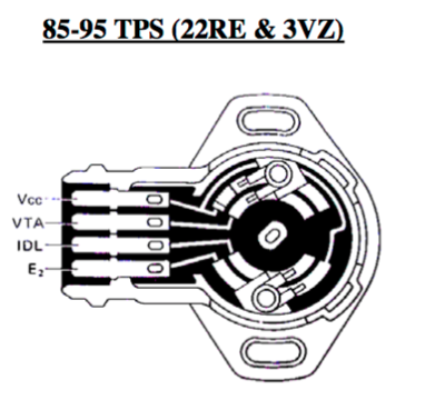 The Toyota 22RE engines use a "Linear" throttle position sensor. The sensor basically looks at idle or closed throttle (IDL) and throttle angle opening (VTA). The TPS itself is simply a linear variable resistor that when driven by the ECU produces a linear voltage in a 0-5 volt range, 0 volts being idle and up to 5 volts representing throttle opening angle. Internally, there is also a switch that detects the idle position. Proper adjustment of the TPS is critical for engine performance, fuel economy, and emissions. An improperly adjusted TPS affects many other inputs and outputs from the ECU, many of which would not even logically point to the TPS. Some common symptoms of a bad TPS are; erratic shifting (automatic transmission), inability to adjust timing correctly, poor throttle response, poor fuel economy etc... Many of these running issues can be solved by a simple adjustment! Aside from being out of adjustment, the TPS can just plain wear out or break internally.