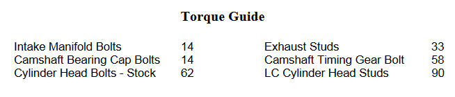 Install the new exhaust studs in the cylinder head using a small amount of medium strength thread lock on each stud during assembly. Remove and install the intake studs from your old cylinder head as necessary. Install the camshaft using assembly lube on all new camshafts. Torque cam bearing cap bolts to 12 lbs.