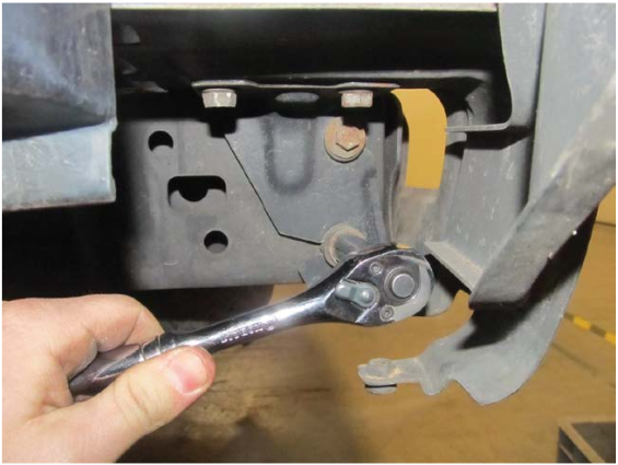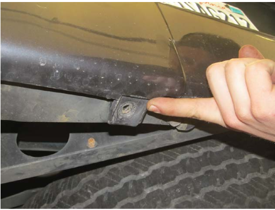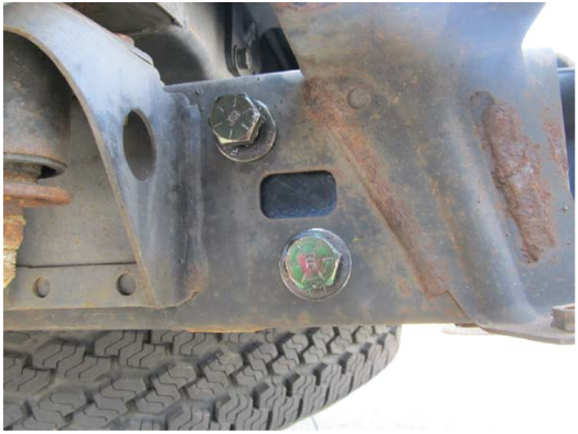 5. Depending on model the weld nuts shown may need to be removed. The tack welds are easily broken by striking the nut with a punch. If your vehicle does not have these weld nuts please skip to step 7.