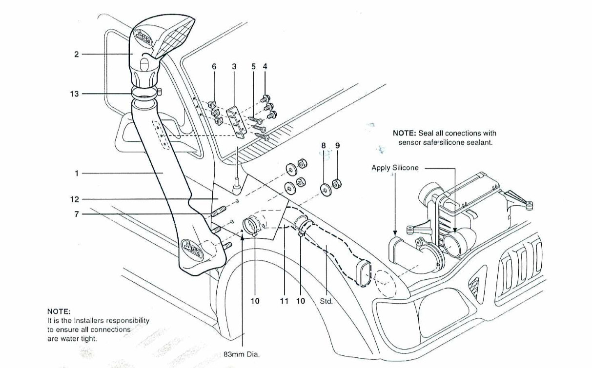 Protecting your engine from dust and water ingestion is essential when driving off road. A Safari snorkel will ensure that clean, dry air is always available, regardless of conditions.