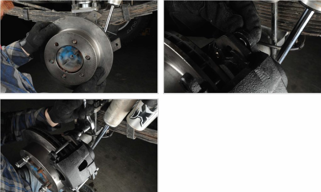 Completely bleed the brakes so that all air is removed from the system and test for leaks. It may be necessary to add more brake fluid to the brake fluid reservoir during this process.