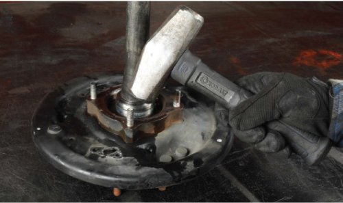 Step 4: Remove the (4) nuts holding the axle and backing plate assembly to the axle housing.