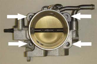 5. Remove throttle body from intake plenum (Most models use three bolts and one nut). a.The throttle body does not need to come completely off the vehicle so you can keep most of the lines connected to the throttle body. If you do remove lines be sure that they go back in the same place they started (a camera can be a useful tool to see where everything came from).