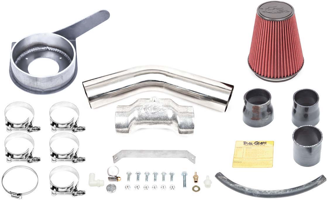 - Polished stainless steel intake tubing and cast aluminum filter bracket with large, high-performance air filter charger.