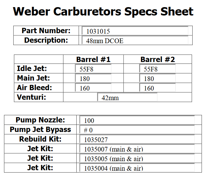 So - when you buy - do you want the original? The WEBER carburetor that is legendary in its performance. A proven carburetor with a track record extending over 30 years. The Italian designed carburetor that was, and is, the benchmark by which all 2bbl carburetors are measured. Built in Europe to the same exacting standards that only the original European Weber carburetors can deliver on. Or - do you want a branded or "Similar" carb (usually without knowing your aren't getting the original European Weber). The choice is simple. Be sure it says REDLINE to assure you that your "genuine" European WEBER carburetor is tuned and jetted for the absolute best value your money can buy. REDLINE's use of the European WEBERS assures the consumer they are receiving the same high quality genuine WEBER carburetor that has gone into the conversion kits for over 30 years. Time and race proven - there is really only one "genuine" Weber carburetor - the Legendary European designed and built WEBER (made in Spain).