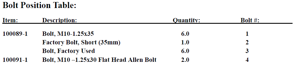 - (2) Bolt, M10-1.25x30 Flat Head Allen Bolt