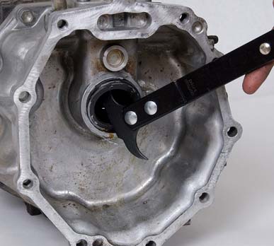 5. Remove rear transmission seal using a seal remover or claw hammer.