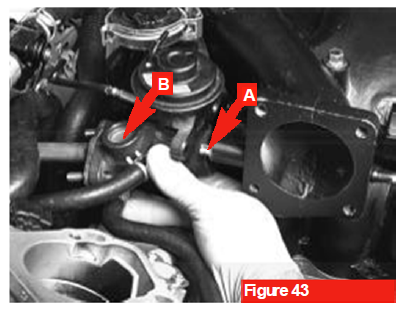 1. Loosen the EGR pipe from the driver's side exhaust manifold. This will ease the removal and installation procedures (figure 42).