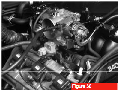 15. Using your diagrams, and those in the back of this manual, double check the routing of vacuum hoses, cables and brackets and correct any problems (figure 38).