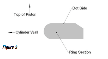 - Ring gap should be file in an inward direction and 1. If the ring has a dot or writing on it, install with this side up. 2. If the ring is a taper hook groove style, the groove square to the sides.