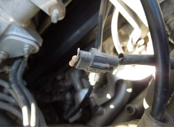 17. The EGR heat sensor plug in the harness is where we will install a resistor. We supply two, a 10k ohm and a 5.7k Ohm. Start with the 10k resistor if the check engine light comes on switch resistor to the 5.7k Ohm. Use electrical tape to cover the plug and resistor. (Picture 3)