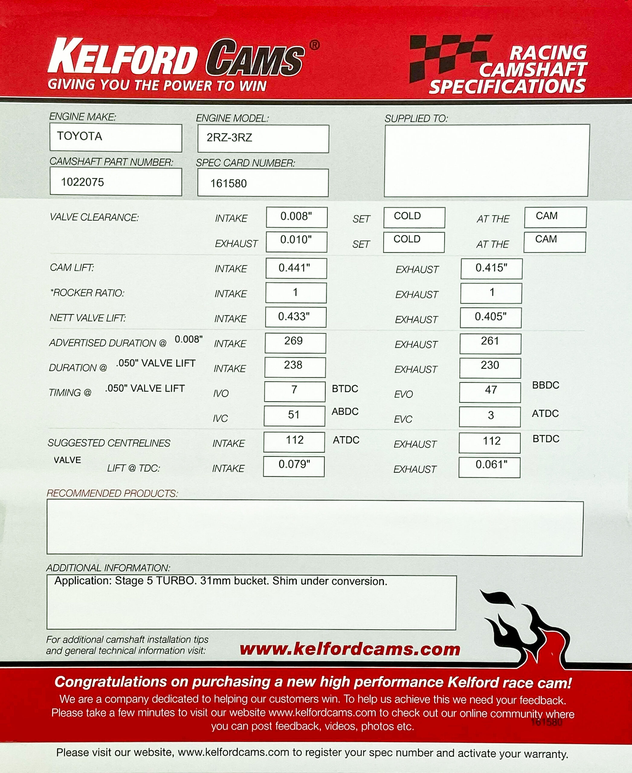 LC Engineering has the largest selection of Toyota cams anywhere which means that no matter what application you have we can get the right cam for you. With power potential over 1,500hp, the 2RZ/3RZ Stage 5 Turbo Camshaft Set is not for the weak! These cams have a huge lift and make huge power! These cams are designed to be used in drag racing under high boost (20-40psi) applications.
