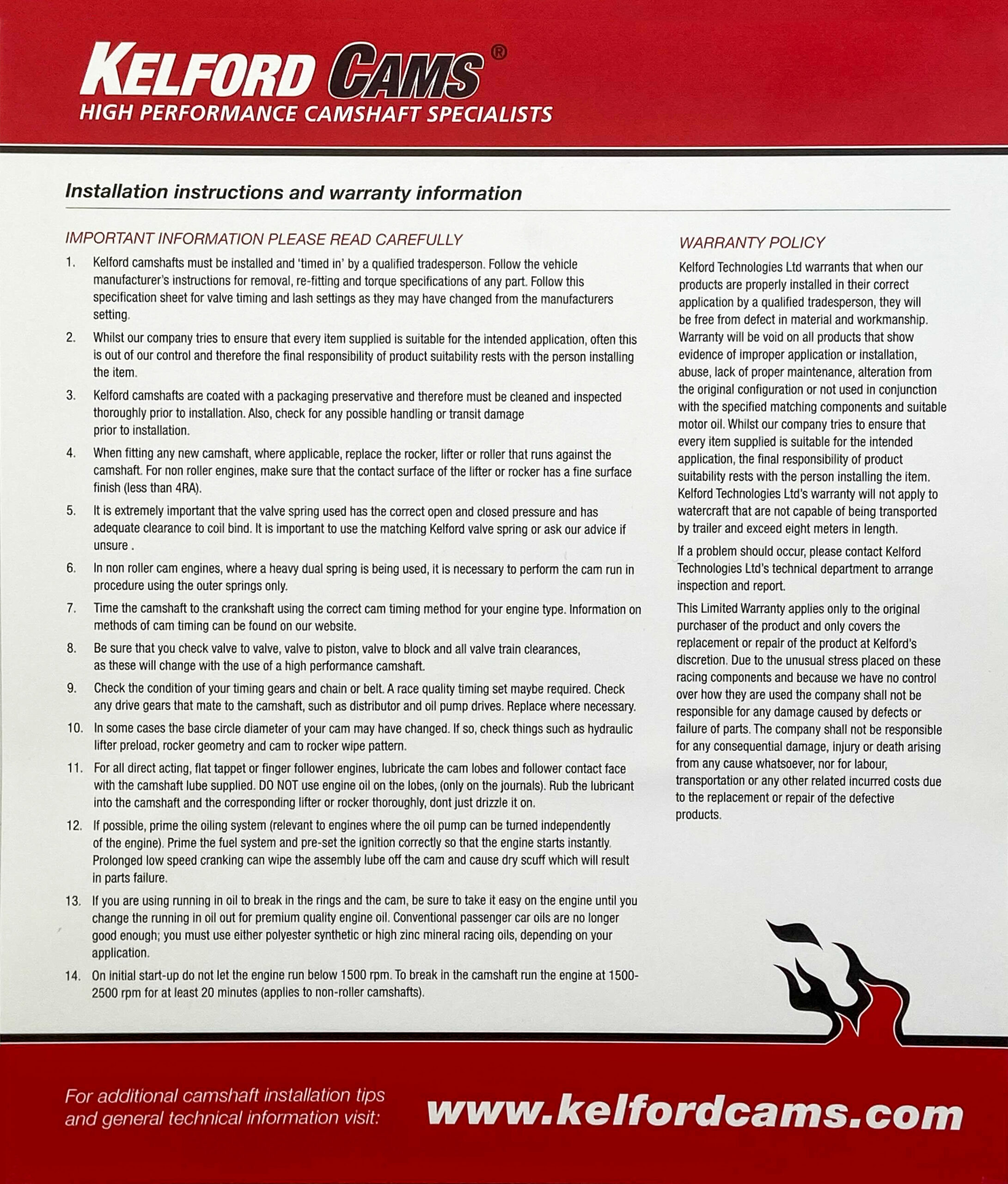 NOTE: These cams will require the use of an aftermarket computer system like the Haltech. Due to the larger lift, they will also require 31mm "shim under" style bucket instead of the stock "shim over" style. These camshafts will work with carbureted applications.