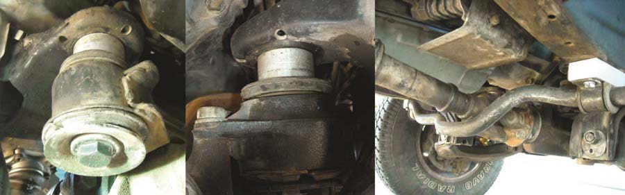 2. Remove factory bolts and nuts, supporting the rear of the differential. Save the OEM washers and flange nut for reinstallation. The front differential mount will pivot to allow spacers to be installed. No change to the front mount.