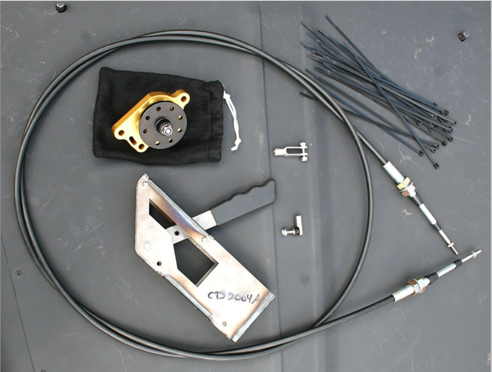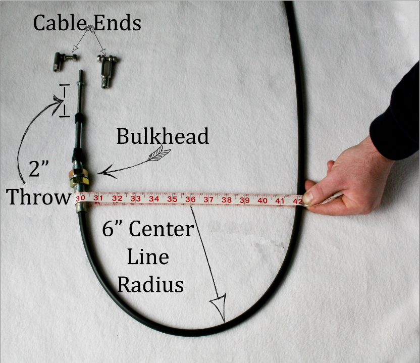 The Hand Shifter needs to be able to fully engage in both the "Open" and "Lock" Shifter Gates, without over extending or over compressing the cable. Tighten the Bulkhead once the Cable's center of throw has been found. (Use the 2" Throw Cable supplied in the kit)