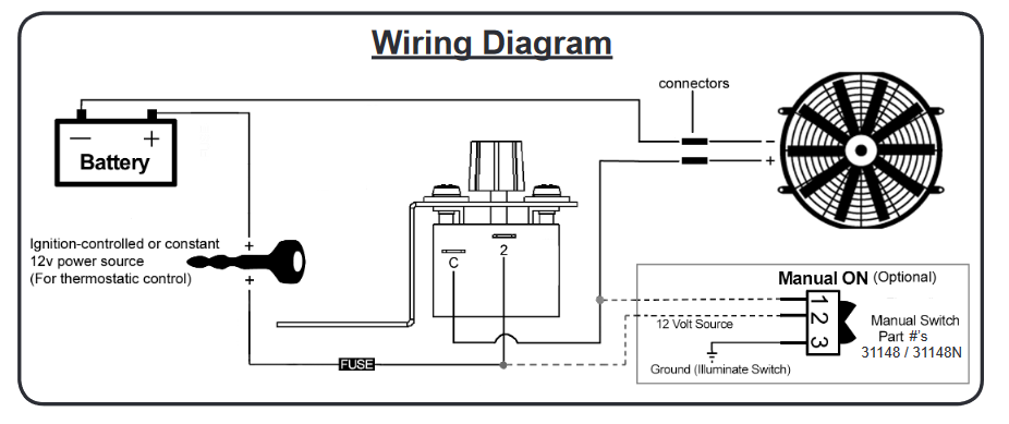 - If manual control is desired, use P/N 31148 / 31148N. Refer to wiring diagram below.