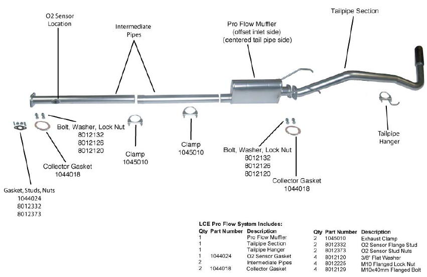 All of our Pro Flow Exhaust Systems are made with 409 stainless steel tubing, 426 stainless steel straight-through Magnaflow muffler and 3/8" thick mild steel flanges. The straight-through design of the Magnaflow muffler offers the highest flow while still maintaining a smooth, yet authoritative tone without attracting unwanted attention. They are then ceramic coated for long lasting good looks and protection from the elements. LC Engineering designs our kits to be a direct fit application that requires little or no modifications, and uses factory exhaust hanger locations. This bolts up behind your factory catalytic converter or one of our high flow performance catalytic converters. This exhaust system features 2-1/2" tubing with a 3" polished stainless tip. Every kit is shipped complete with all the instructions and hardware you will need for a quick and easy installation process.