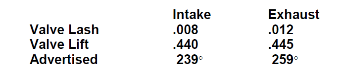 | Valve Lift | .440 | .445 |