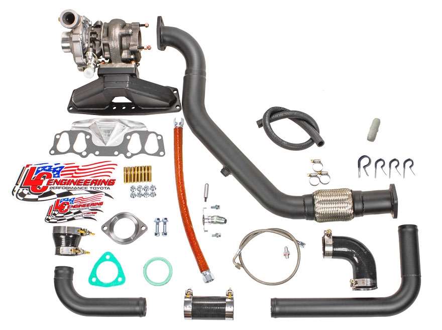 LC Engineering's Turbo Kits are designed for use on the Toyota 22RE-powered trucks, 4Runners. Whether for street or competitive drag racing, LC Engineering can configure a custom turbo kit for your specific needs. The LCE street turbo kit is designed to utilize our Haltech System or any other stand-alone engine management system. Along with larger injectors, the Haltech System can be programmed to provide the correct fuel and ignition curve for a performance turbo engine. Please make sure your engine is set up to handle boost before adding a turbocharger kit.