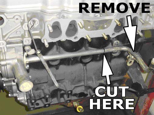 the steel tube. Cut the rubber heater hose behind the valve cover (See illustration below for the