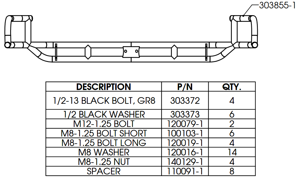 8. Slide bumper into frame. Use the supplied ½" hardware to secure the side mount plates.