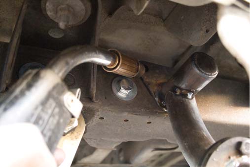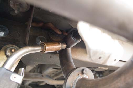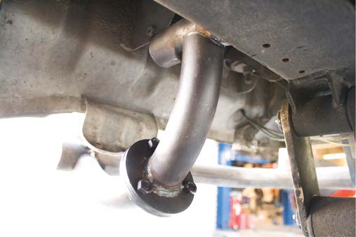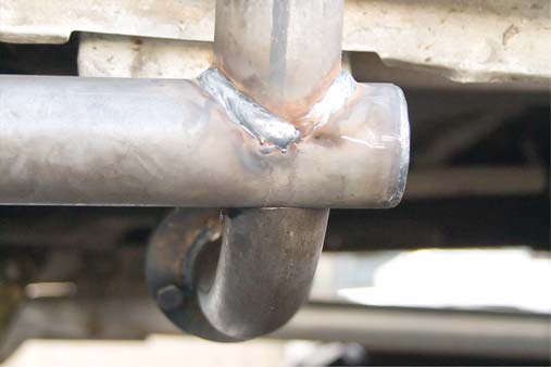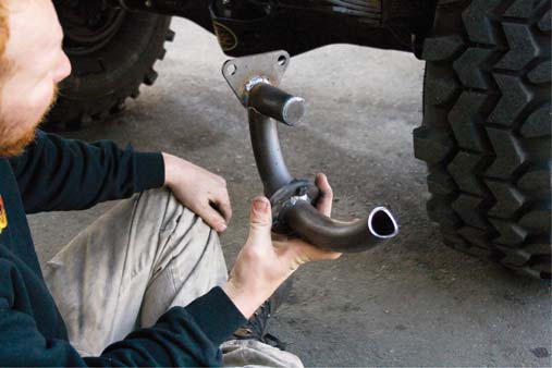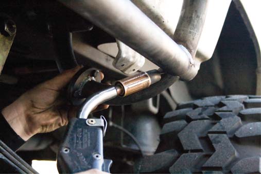3. Tack weld the flange tube assembly to the bumper. Make sure the long flange tube (A) is contacting the bumper.