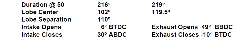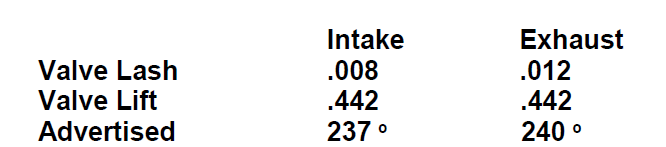 The following figures taken @ .050 lift at valve with .000 valve lash.