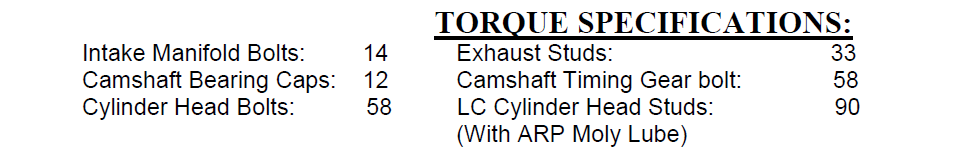 This Camshaft must be installed with new rocker arms. LC Engineering will not warranty any camshaft that was not purchased together with Aluminum rocker arms. LC Engineering highly recommends using our Pro Camshaft Kit (Part# 1020000) or Double Spring & Retainer Kit (Part# 1023210) when running any cam with over .460" lift or in any application that requires a sustained RPM of 6,000 or higher.