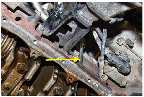 9. Install the new dipstick tube into the block using ultra grey at the mating surface.