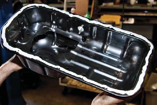 7. Apply a bead of ultra grey to the oil pan mating surface.