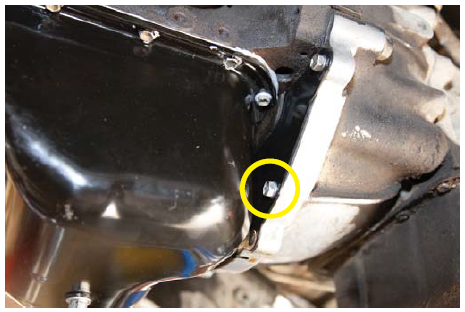 10. Mark and drill a hole in the motor mount bracket to mount the dipstick tube. We drilled a 5/16" hole and used an 8mm bolt.