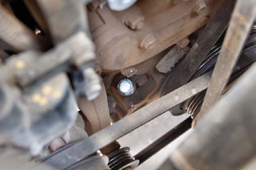 9. Re-install the dust shield. The circled bolt will need to be shortened by 3/8".
