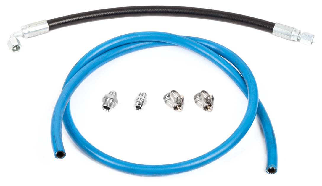 4.The 2.7 Tacoma Power Steering Hose Conversion Kit will come with a sufficient length of low pressure return hose (blue). You will need to cut this hose and use a large portion of it to connect the power steering box to the cooler, and then use the smaller remaining portion to connect the cooler to the power steering pump.