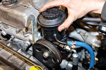 9. Make sure all lines are tight and secure, fill with power steering fluid.
