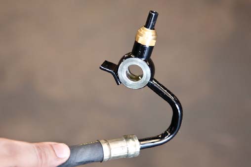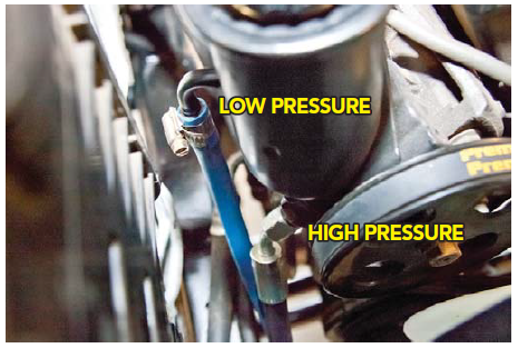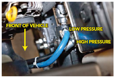 3. Tighten hose clamp on low pressure line. Install high pressure line and tighten.