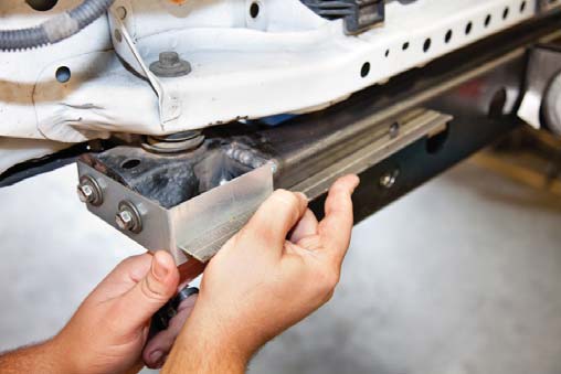 9. Slide front hanger mount onto the frame rails. Mount