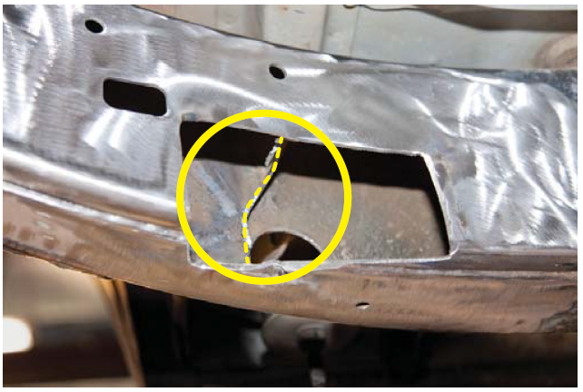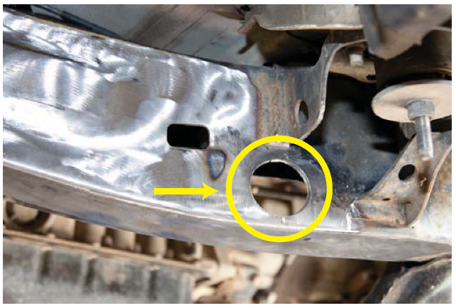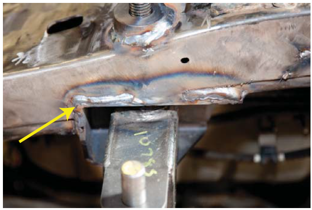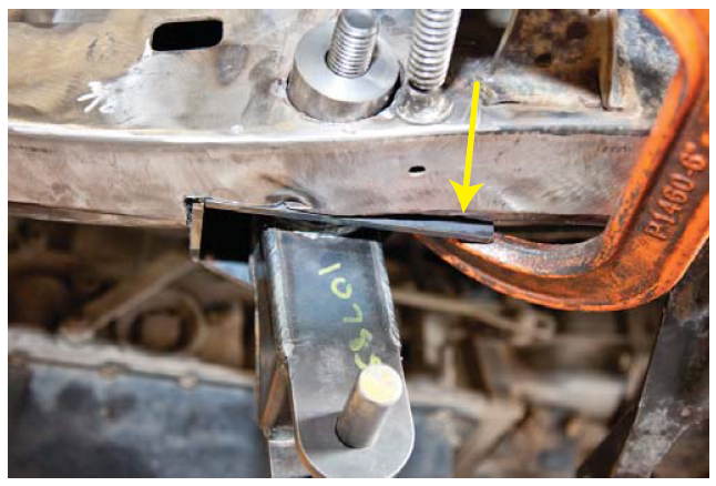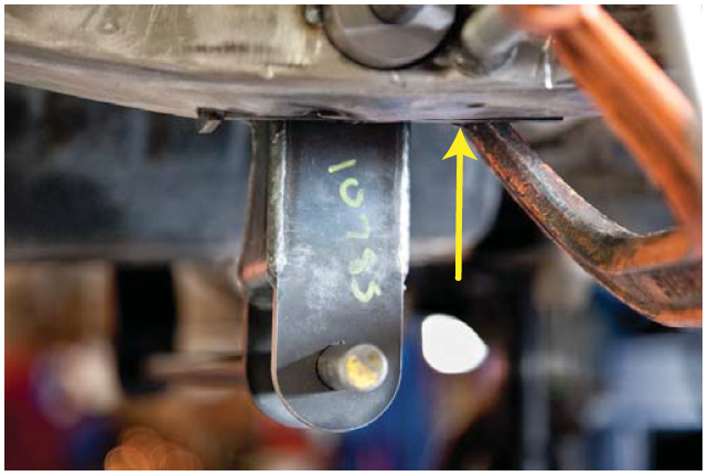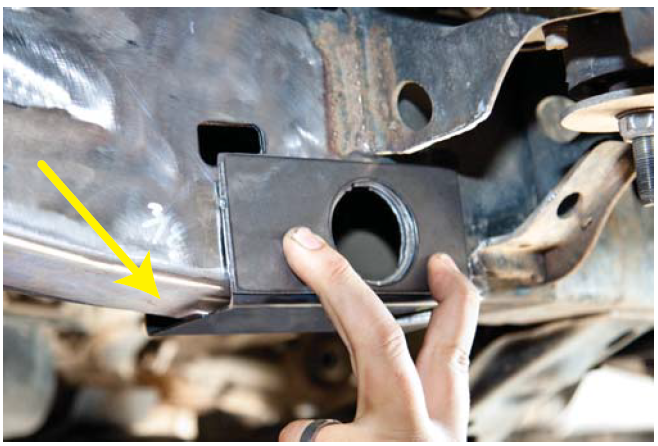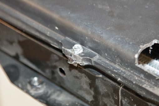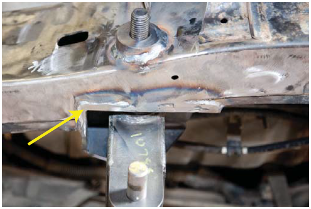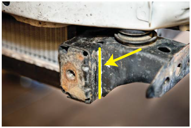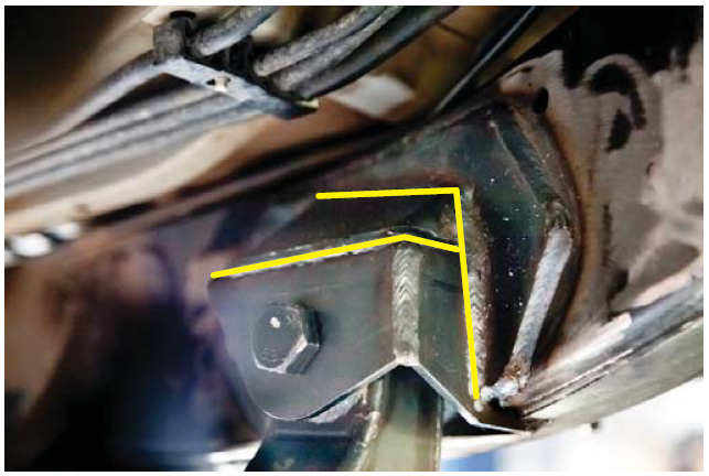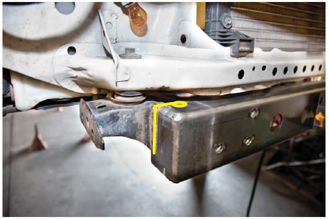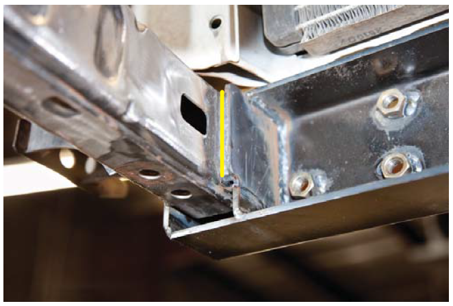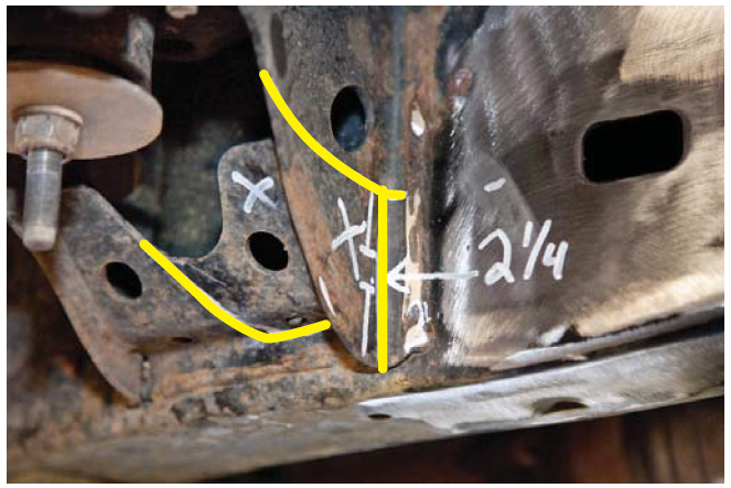 6. Mark the body mount as close to the weld as possible.