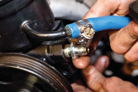 that into the outlet port of your power steering pump.