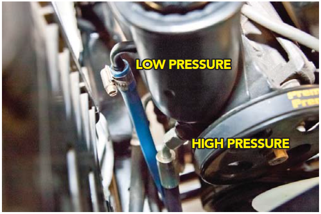 steering pump to the rack and pinion.