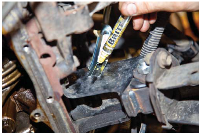 15. Cut the brake line tab off as shown for future use.